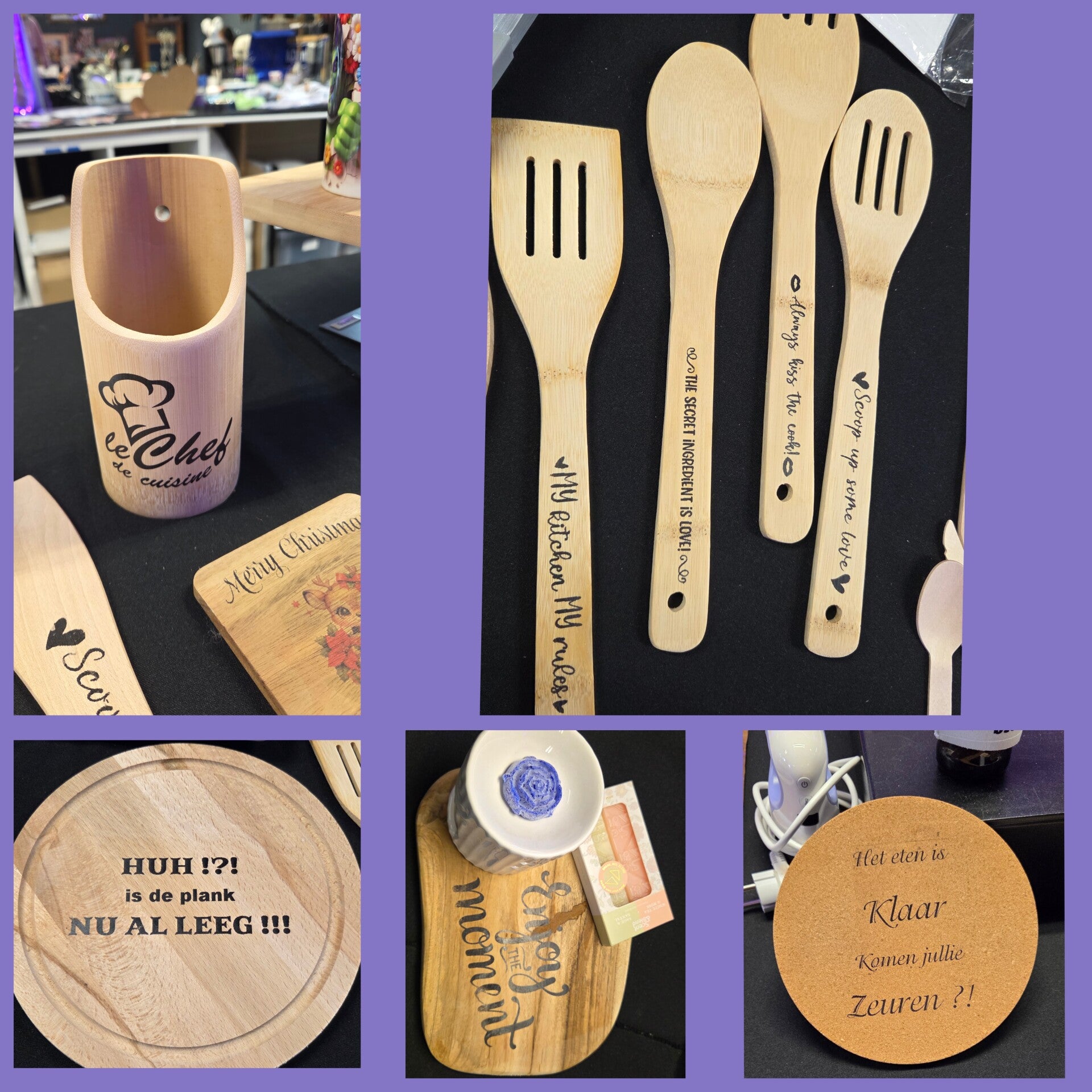 Bij Wigero transformeren we alledaagse houten artikelen in unieke, persoonlijke geschenken. Denk aan stijlvolle onderzetters, een rustiek snijplankje of een elegante lepelset, allemaal gepersonaliseerd door middel van hoogwaardig drukwerk. Deze items zijn niet alleen functioneel, maar vertellen ook een verhaal, jouw verhaal.